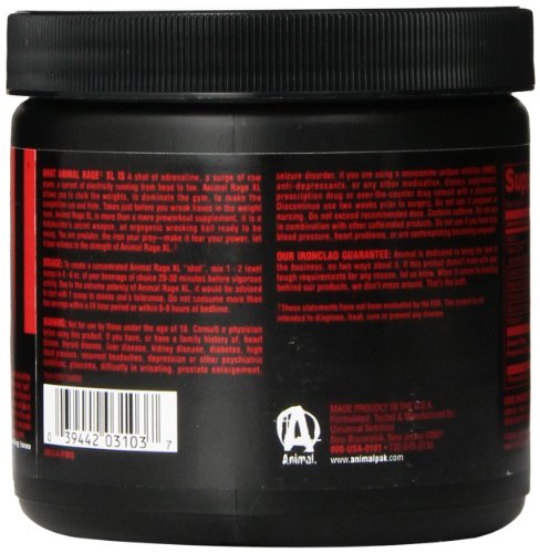 ReleaseDate : 2014-01-17 Studio : Universal Nutrition Publisher : Universal Nutrition Binding : Health and Beauty Product Description This new, more potent Animal Rage XL formula is comprised of four powerful complexes, in the spirit of all Animal products before it, delivering a comprehensive and precision measured dose of energy, focus and performance nutrients. 0