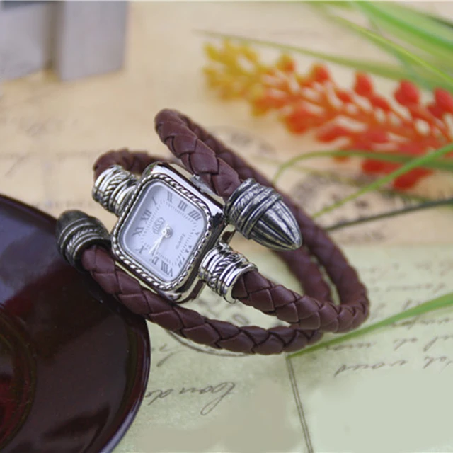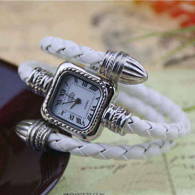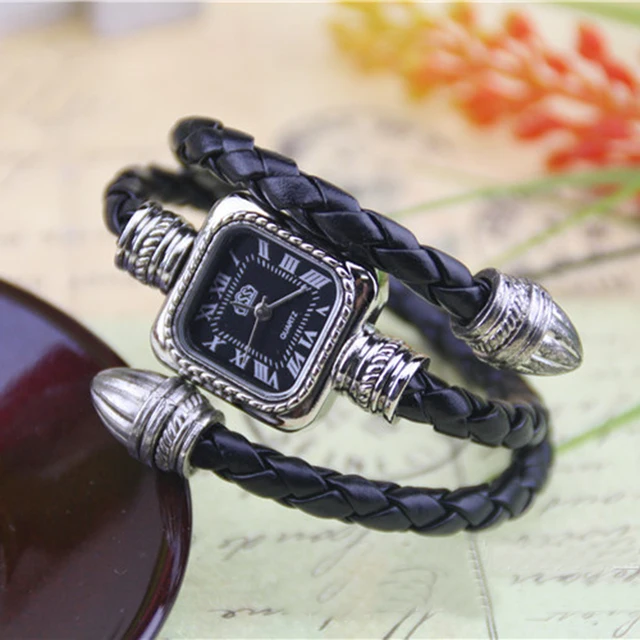 | [해외] Cindiry 복고풍 여성의 시계 독특한 디자인 창조적 손목 직조 가죽 드레스 시계 펑크 패션 석영 팔찌 시계 |
