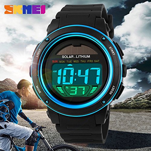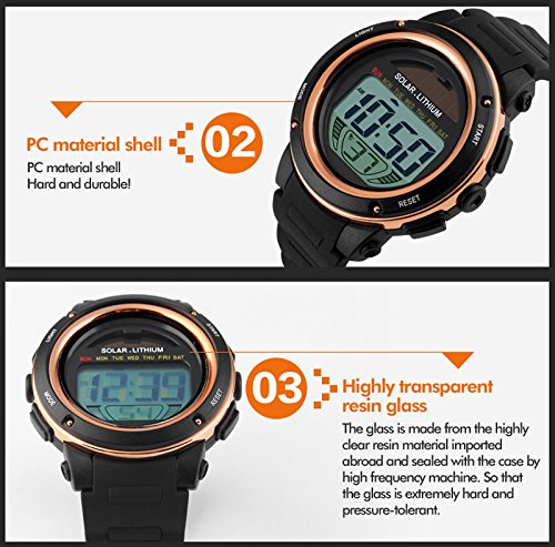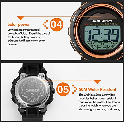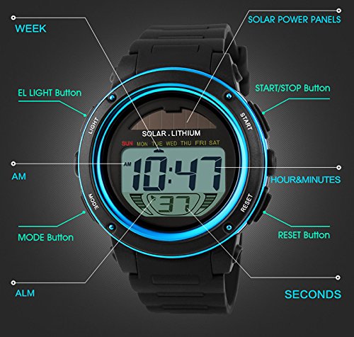 -. Title : Smalody ソーラーウォッチメンズ時計スポーツLED防水50メートルバックライトストップウォッチアウトドアデジタル腕時計