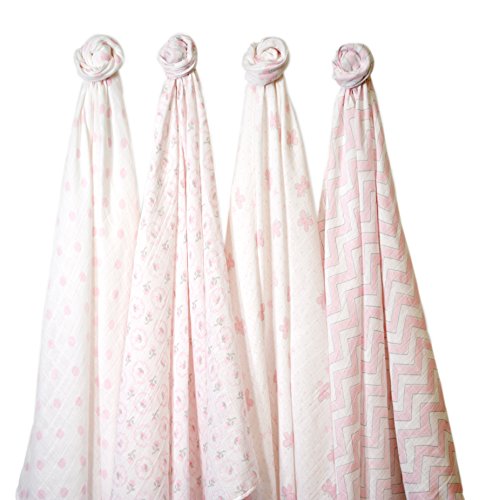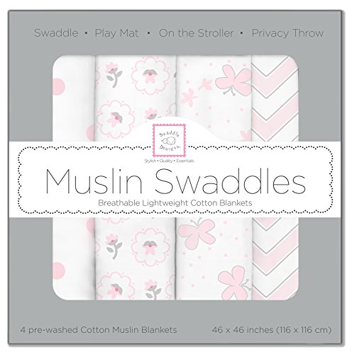 Wrap your baby in pure softness. Rest easy when your baby is lovingly swaddled in premium 100% cotton muslin. Our SwaddleDesigns quality muslin with cheerful designs and comforting colors gets softer with every wash. The open weave increases breathability and reduces the risk of overheating. The generous size and our helpful labels make swaddling easy as 123. Beyond swaddling, use as a nursing cover, sunshield on the stroller, playmat for tummy time, and more. Set of 4 packaged in a box. Each 46 x 46 inches (116 x 116 cm). Coordinates with a variety of our quality baby essentials. Machine wash gentle.Feature