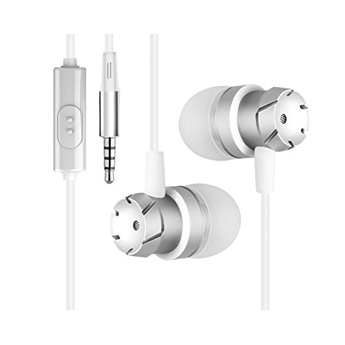 Wired Earbuds In Ear Earphones, CNHON Active Noise Cancelling stereo Headphones with Microphone and Remote (3.5mm Jack, Premium Aluminum, white)