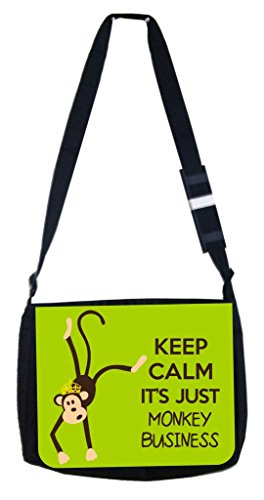 -. Title : Keep calm it's just monkey business, green Rosie Parker Inc. TM Medium Sized Laptop Messenger Bag 11.75" x 15.5"