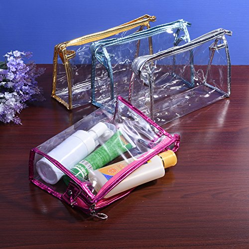 BCP 4pcs PVC Clear Color Zipper Cosmetics Bag, Hand Pouch Organizer Makeup Bag