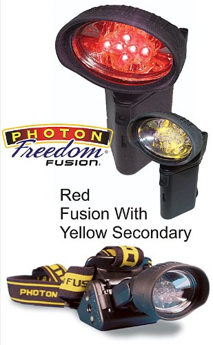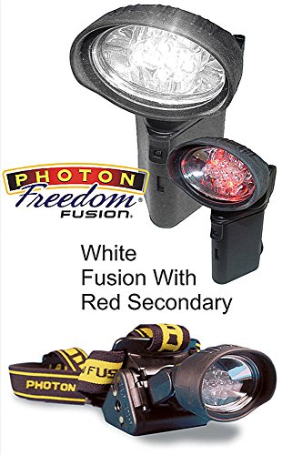 Studio : Laughing Rabbit Publisher : Laughing Rabbit Binding : Tools Home Improvement Product Description The Photon Freedom Fusion is the new and improved multifunctional light from the Photon Freedom series of lights. Pulse Width Modulation and DC-DC voltage regulation make the Freedom Fusion the ultimate in energy efficient lighting, precisely managing power output to provide a constant level of light all the way to the end of battery life. A single set of alkaline batteries will power the light at full brightness for over 14 hours! The light output from the 8-LED dual beam array is fully adjustable, allowing while the pivoting indexed head reliably aims the light and guaranties it will stay where you direct it. The water resistant Freedom Fusion is also a hand flashlight easily disconnected from the head strap. This design allows convenient hand or table top use. The included belt clip provides even more functionality, allowing the Fusion to be used as a clip-on safety light. Runs on Carbon, Alkaline, NiCad, NiMH, or Lithium AA cells. All contacts are gold-plated. Bike taillight/headlight use is possible with optional mounting bracket. Used as a taillight, the red Fusion is possibly the brightest bike taillight on the market! The Photon Fusion is designed for long life and rugged use by the serious user. 0