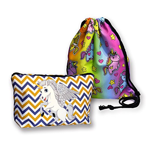 Makeup Bags NANJA Fantasy 3D Printing women Unicorn Cosmetic Bags + 1pcs Unicorn Drawstring Backpack (Pattern B)