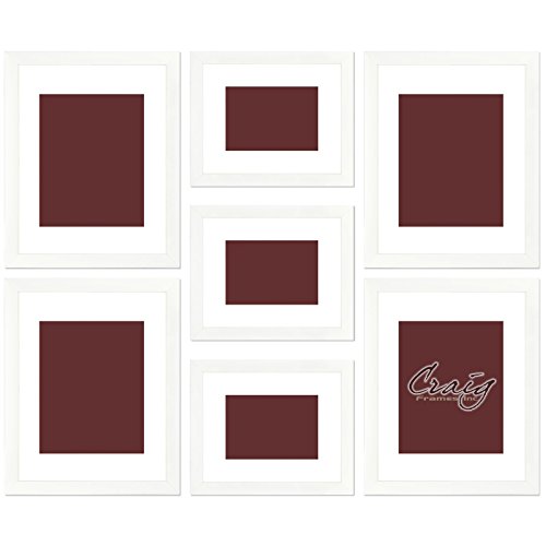-. Title : Craig Frames Complete Picture Frame 7-Piece Wall Set, Wood Composite Frames, White Display Mats