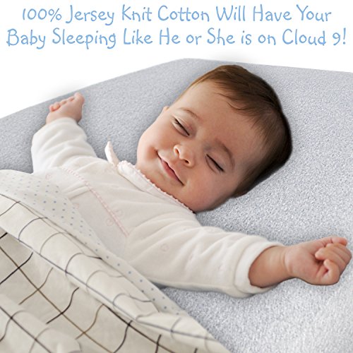 ❤︎ULTIMATE IN COMFORT—Our sheets are 100% Jersey knit, super soft plush cotton. Jersey cotton is a breathable fabric that allows air to circulate around your baby, keeping your baby cool in the warmer months but may also be used in the cooler months. Give your baby the comfort required for a peaceful, serene, and restful sleep