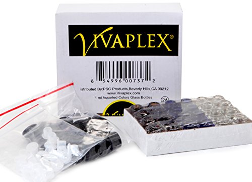 Vivaplex, 24, Assorted Colors, 1 ml (1/4 Dram) Glass Bottles, with Orifice Reducers and Black Caps