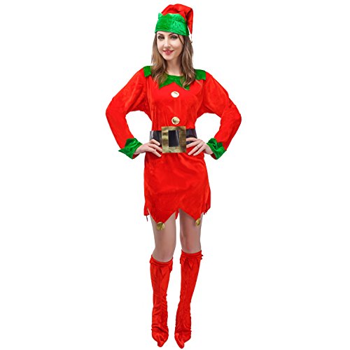 -. Feature : Women's Simply Christmas Elf Costume is include:the classic red hat, dress, Belt, Boot cover. / 100% Polyester / Imported / High Quality bag with handle / Hand Wash