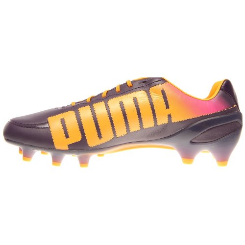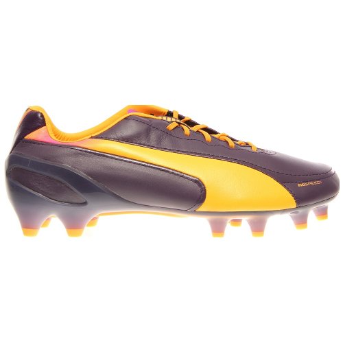 - Feature : UPPER: Soft calfskin leather for an incredible fit and natural feel on the ball. GripTex print on the upper puts 3D transparent print on the upper for ball grip and better touch on the ball, especially in wet conditions. / EverFit cage construction provides additional internal stability. Extremely low profile perforated tongue. TPU injected external heel counter for balance. PUMA's evoAptoLast for an unrivaled fit. / MIDSOLE: Cushioned EVA insole. OUTSOLE: Lightweight injected high performance thermoplastic elastomer (aka lightweight power) with new Pebax Speedtrack spine for improved reaction time and durability. / DuoFlex enhances natural foot movement. Bladed and conical studs for optimal traction on the field. For use on firm, natural surfaces. WEIGHT: 9 oz.