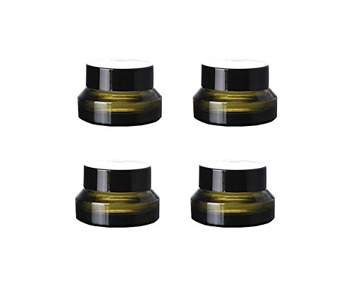 15ML 0.5oz Inclined Shoulder Pickle Green Glass Cream Bottle Container Black Lid Pack of 4