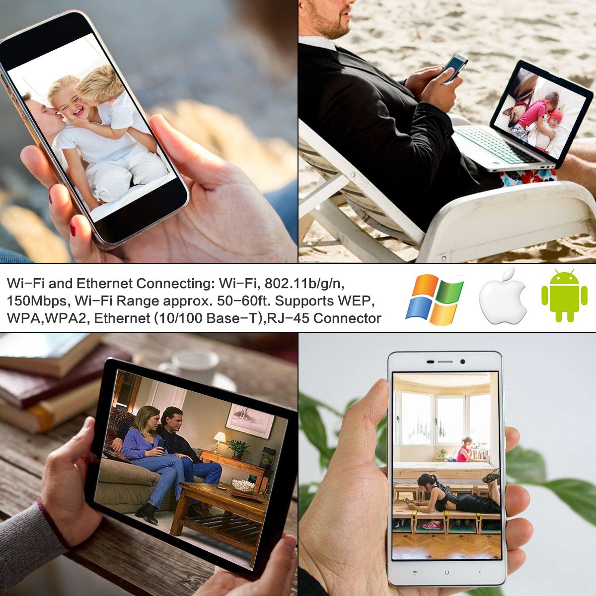 Support WiFi, ID card recording, IR night view, motion detection, email alarm.