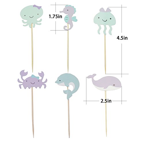 - ✈Ocean Cupcake Toppers Package: Each package includes 36 pcs of cupcake toppers, 6 styles in total (octopus, seahorse, jellyfish, crab, dolphin, whale), 6 pcs each.