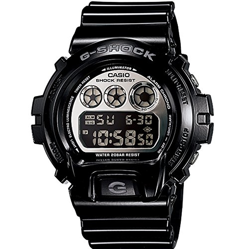 Brand, Seller, or Collection Name:Casio Model number:DW-6900NB-1DR (G673) Part Number:DW-6900NB-1 Item Shape:Oval Dial window material type:Mineral Display Type:Analog Clasp:Buckle Case material:Plastic Case diameter:50 millimeters Case Thickness:16 millimeters Band Material:Metal Band length:2 Band width:22 millimeters Band Color:Black Dial color:Silver Bezel material:Resin Calendar:Yes Special features:Digital Item weight:2.40 Ounces Movement:Quartz