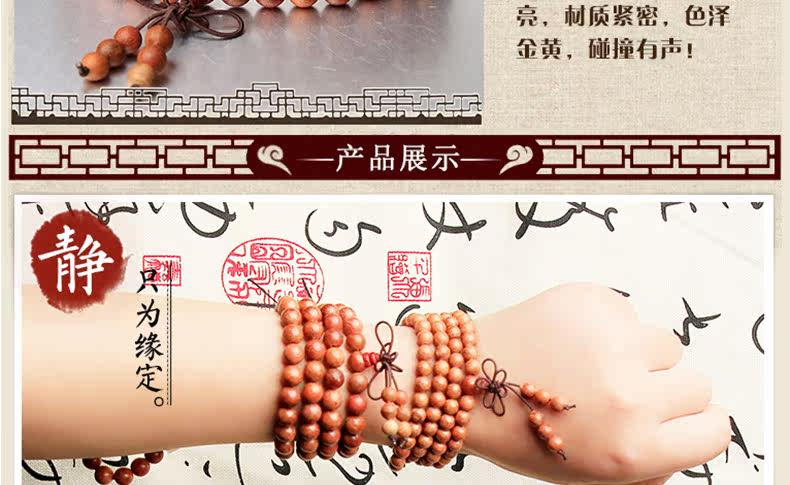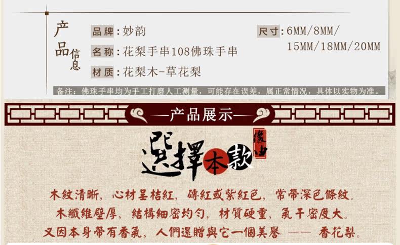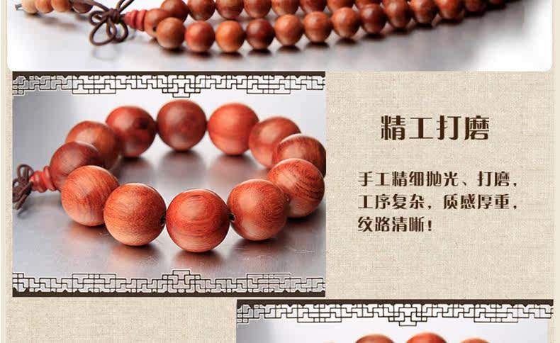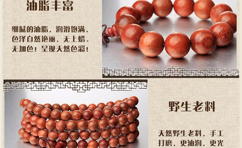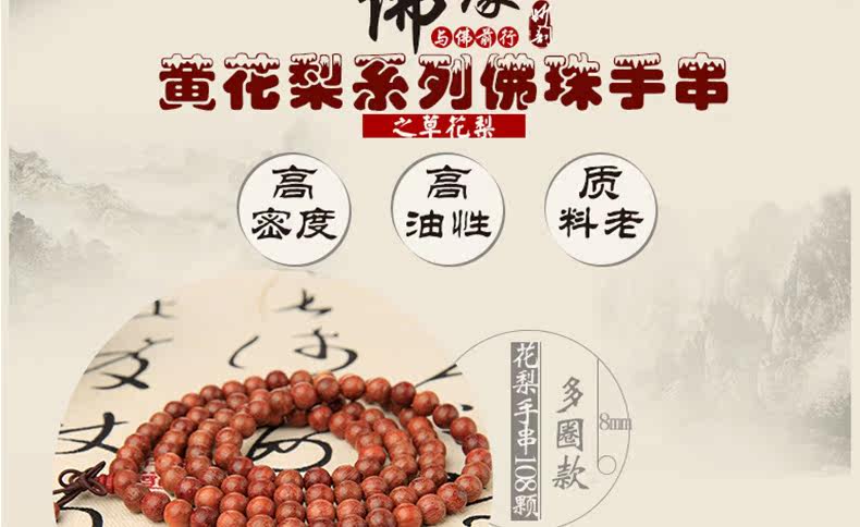 正宗黄花梨木手串天然草花梨佛珠手链男士108颗佛珠项链女款念珠
