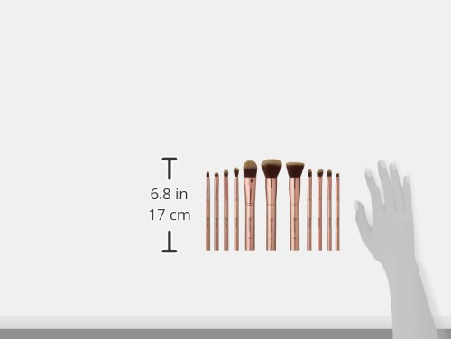 メタルローズ - 11ピースブラシセットでプロのようなグラスを作成します。メガネのローズゴールドトーンジップポケットファスナーケースは、あなたのセットを自宅や店内に保管するためのシックな方法です。外出!