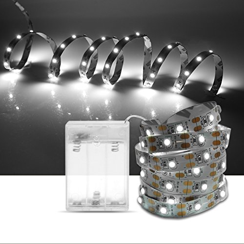 GOESWELL Led Strip Lights Non-waterproof Cool White Battery Powered Led Strip 3528 SMD 1m 60leds Led Tape Light for TV Holiday Christmas Decoration