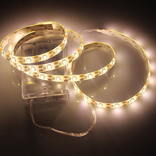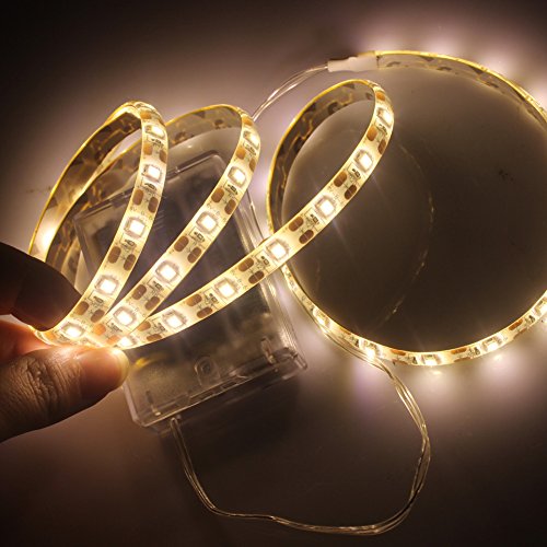 SZMYLED Waterproof 3528 Led Strip Lights 1m 60leds Warm White Battery Operated Flexible Ribbon Lights