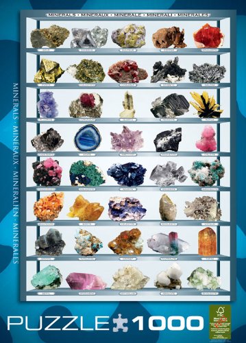 -. Binding : Toy -. Brand : EuroGraphics -. Department : Educational -. EAN : 0628136620086 -. Feature : 1000-Piece Puzzle / Box size: 10" x 14" x 2.37" / Finished Puzzle Size: 19.25" x 26.5" / Manufactured using the highest quality blue board / Made in the USA / Made in the United States / 100% recyclable, safe, non-toxic, and printed with vegetable-based inks and Certified by the Forest Stewardship Council / Printed in Canada, made in the United States / Puzzle pieces are manufactured using the highest quality 0.07" blueboard, offering an exact fit without fraying over time and use / Assembling puzzles improves fine motor skills and picture recognition abilities - promotes both cooperative and independent play -. IsAdultProduct : 0 -. ItemPartNumber : EG60002008 -. Label : Eurographics - Toys -. Manufacturer : Eurographics - Toys -. Model : 6000-2008 -. MPN : EG60002008 -. NumberOfItems : 1 -. PackageQuantity : 1 -. PartNumber : EG60002008 -. ProductGroup : Toy -. ProductTypeName : TOYS_AND_GAMES -. Publisher : Eurographics - Toys -. Studio : Eurographics - Toys -. Title : EuroGraphics Minerals of the World 1000 Piece Puzzle -. UPC : 628136620086 -. Warranty : No Warranty