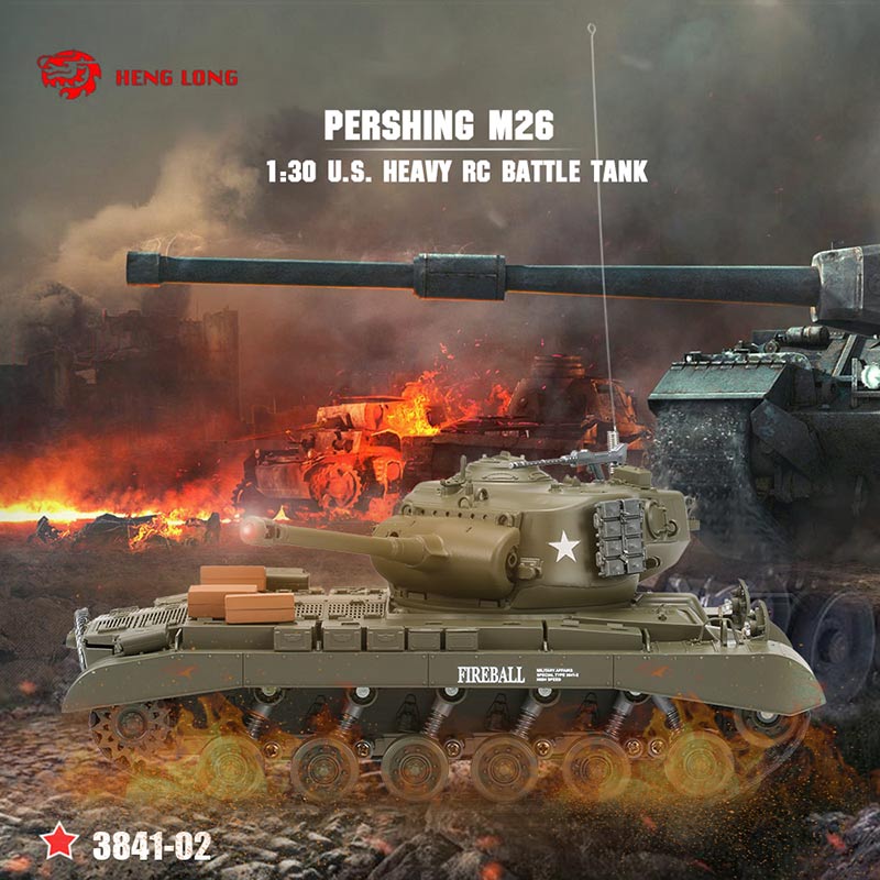 This battle tank was designed based on the U.S. PERSHING M26 heavy tank. Its postpositive driving wheel and pedrail make it more real. The gun tube can moves up and down about 20 degrees, and turret can freely turns 320 degrees. Besides, it can also be a gift as collection or decoration due to vivid and lovely shape.