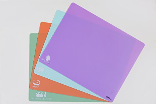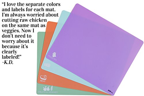 These pastel-colored boards are made of a flexible, yet durable plastic material that is easily cleaned and compact enough to be stored conveniently. This set includes 4 mats: Poultry, Dairy, Meat, and Fruits/Veggies. Special features include: • Designer colors perfect for any kitchen • Extra-thick plastic (1mm) • Large, convenient size (12x15 inches) • Anti-slip back surface • Antimicrobial and hygienic • Non-toxic and BPA free • Dishwasher safe One way to avoid cross contamination in the kitchen is to assign different cutting boards to different types of food. The best way to do this is with color-coded cutting mats, like these from Carol's Gluten Free! You'll love these colorful boards to help you stay organized and keep your food free of contamination in the kitchen. Happy cooking!