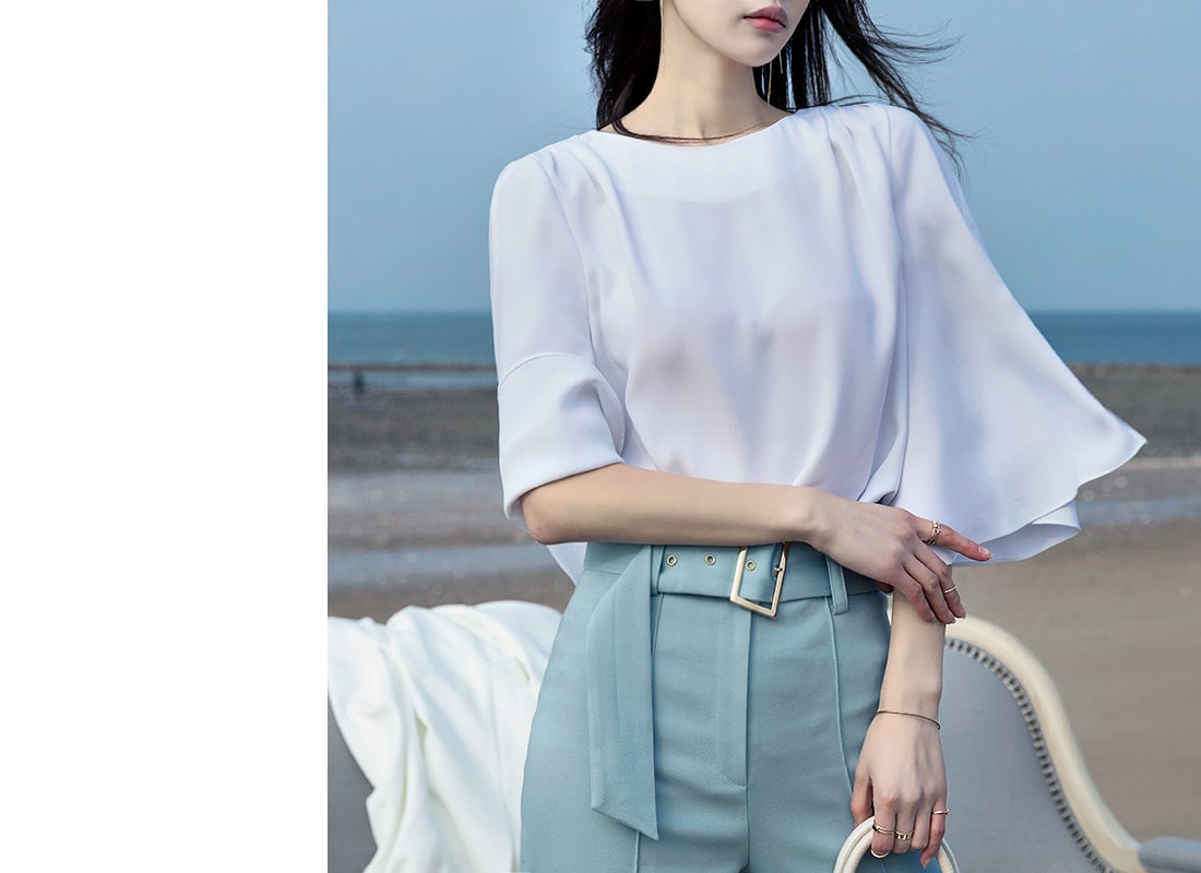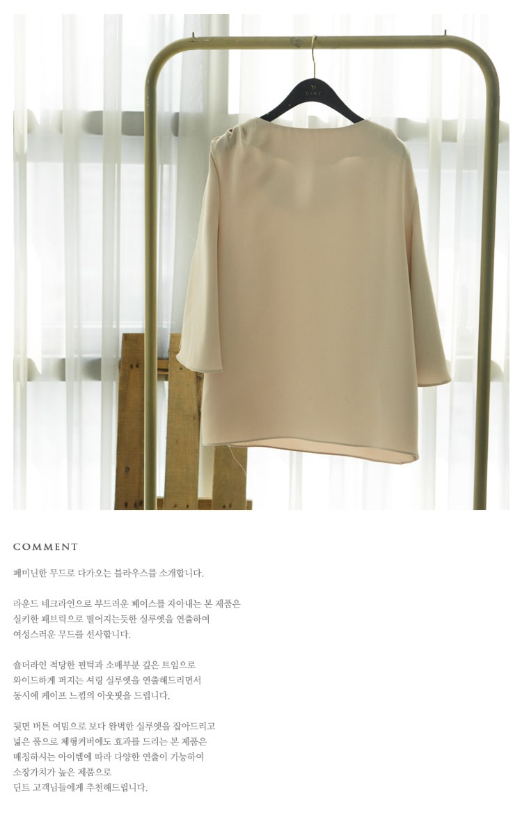 B2180 보트넥 숄더 셔링 슬릿 블라우스 Ivory