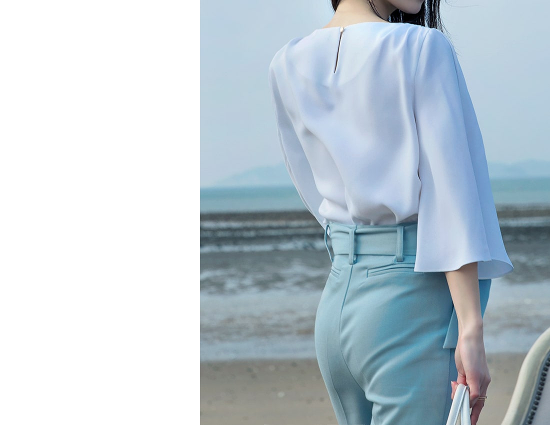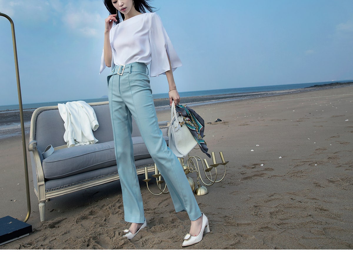 P1826 비비 슬림 핀턱 슬랙스 팬츠(벨트set) Ivory