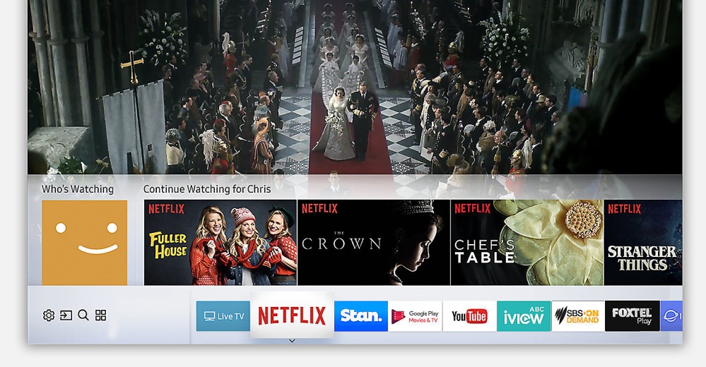 Easily access all your favourite content from one place. Browse through thumbnail previews on Samsung’s intuitive 2017 Smart Hub before diving in.