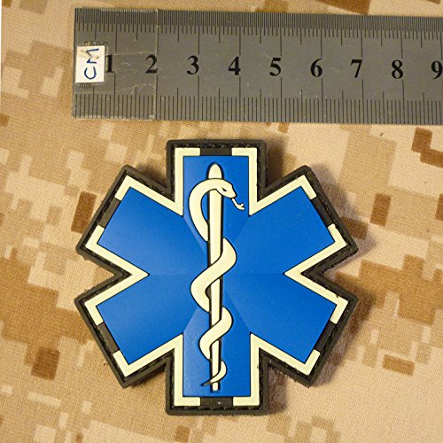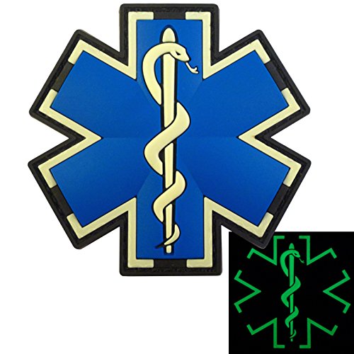 Glow Dark EMS EMT Medic Paramedic Star of Life Morale Tactical PVC 3D Hook&Loop Patch
