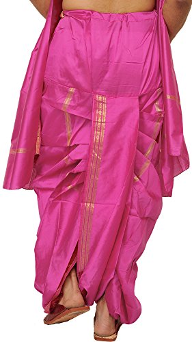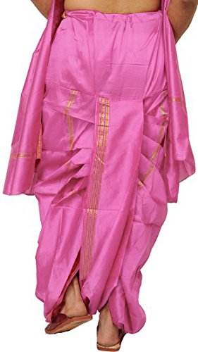 Exotic India Lilac-Rose Ready to Wear Dhoti and Angavas