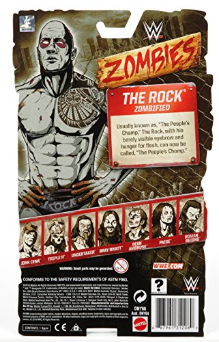 -. Feature : The WWE zombies are coming! / Favorite WWE Superstars have now become "undead" and are ready to roam the earth in zombie form! / This WWE Zombie-fied Superstar figure features unique decorations and pose / Frightfully fun to play with and to collect! / Choose from eight Zombie-fied WWE Superstars including Triple H, The Rock, Roman Reigns, Bray Wyatt, Undertaker, Paige, Dean Ambrose and John Cena