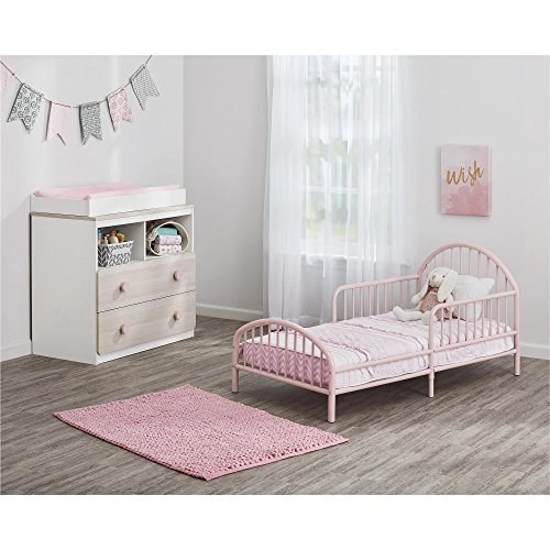 ReleaseDate : 2017-10-30 Studio : Dorel - Multiple - Parent - DROPSHIP Publisher : Dorel - Multiple - Parent - DROPSHIP Binding : Baby Product Product Description Transition your child who has outgrown a crib to this modern Novogratz Prism Metal Toddler Bed. This bed is the perfect height for your toddler to climb in and out of and has nice rounded corners as an added safety feature. The fixed, slatted side rails provide added security while your toddler is in the bed. You can also have peace of mind knowing the finish has been tested for lead and other toxic elements to meet or exceed U.S. government and ASTM safety standards. The painted light pink finish adds a subtle pop of color to your child's room. Toddler bed fits a standard sized crib mattress. Crib mattress sold separately - no box spring needed. This sturdy metal Toddler Bed measures to be 27"H x 29.4"W x 54.4"D and is recommended to be assembled and moved by 2 adults. 0