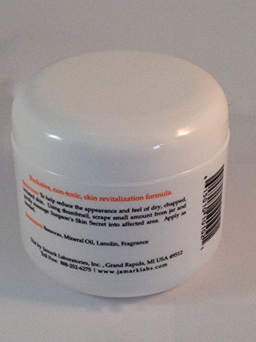 Surgeon's Skin Secret moisturizer is a non-toxic, all natural skin revitalization formula that is good for all skin conditions. It is made with 50% beeswax, lanolin and light mineral oil. Only a minimal amount is needed to be effective. When applied morning and night it begins to heal dry, chapped, cracked, irritated skin as well as minor cuts, scrapes and burns almost overnight. This long-lasting formula puts a protective coating on your skin that seals in your body's natural moisture so you can wash your hands several times before you need to reapply. It comes in unscented as well as several natural fragrances.Feature