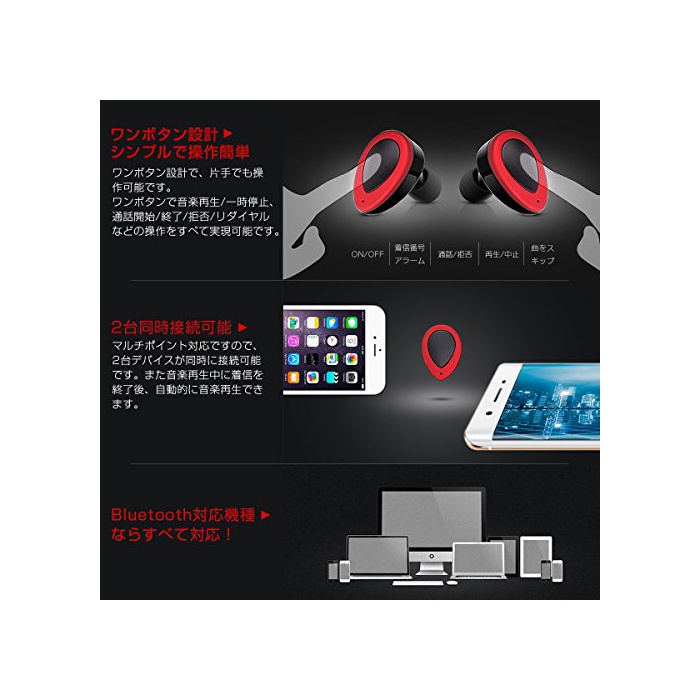 ■ 심플하고 조작 간단한 원 버튼 헤드 세트 디자인,다기능을 원 버튼에 집중 하고 있습니다. 그 원 버튼에 음악 재생/일시정지,통화 개시/종료/거부/re 다이얼 등의 조작을 모두 실현 가능합니다.한쪽 손으로 원 버튼을 편리하고 조작으로 옵니다.