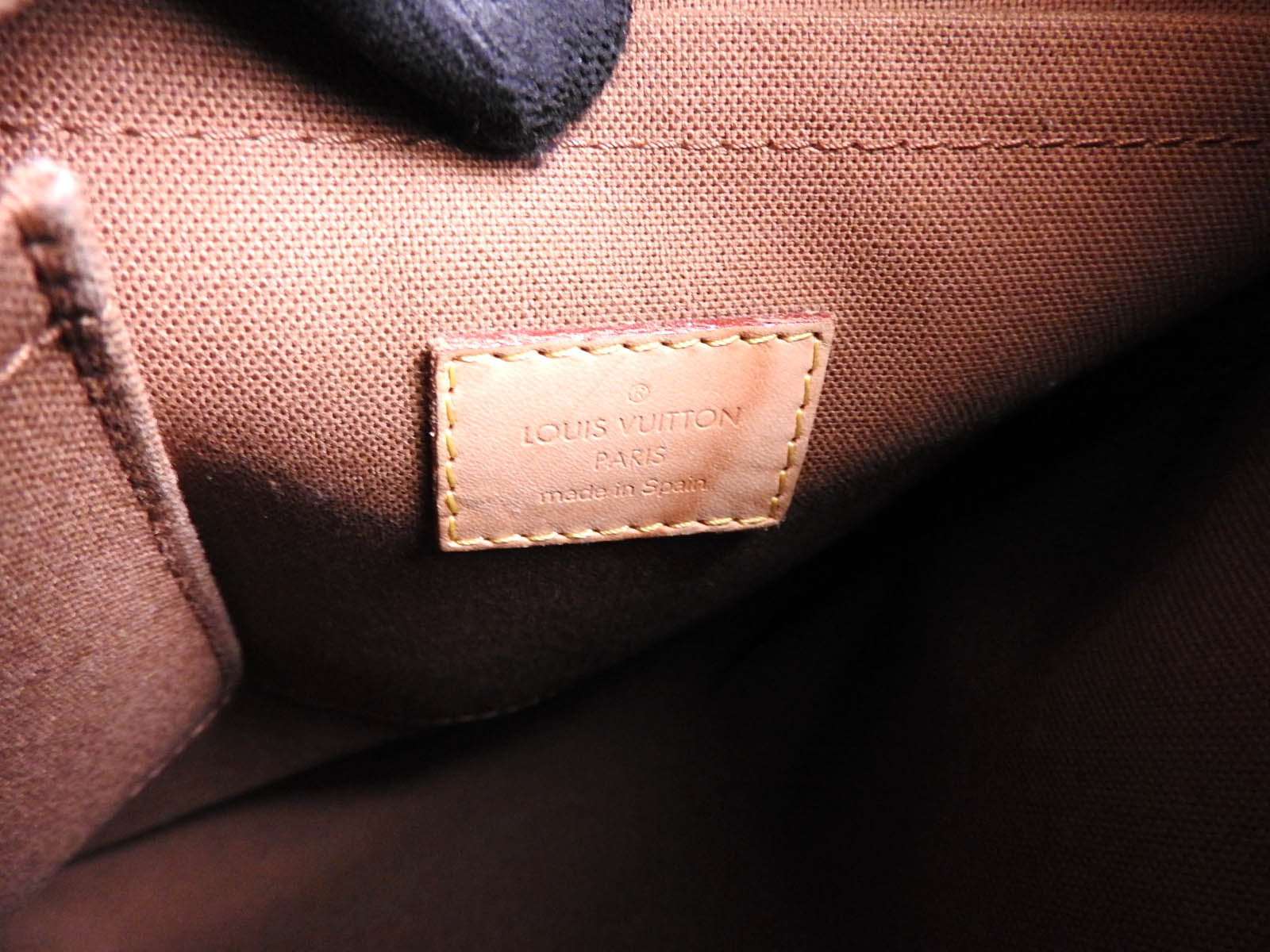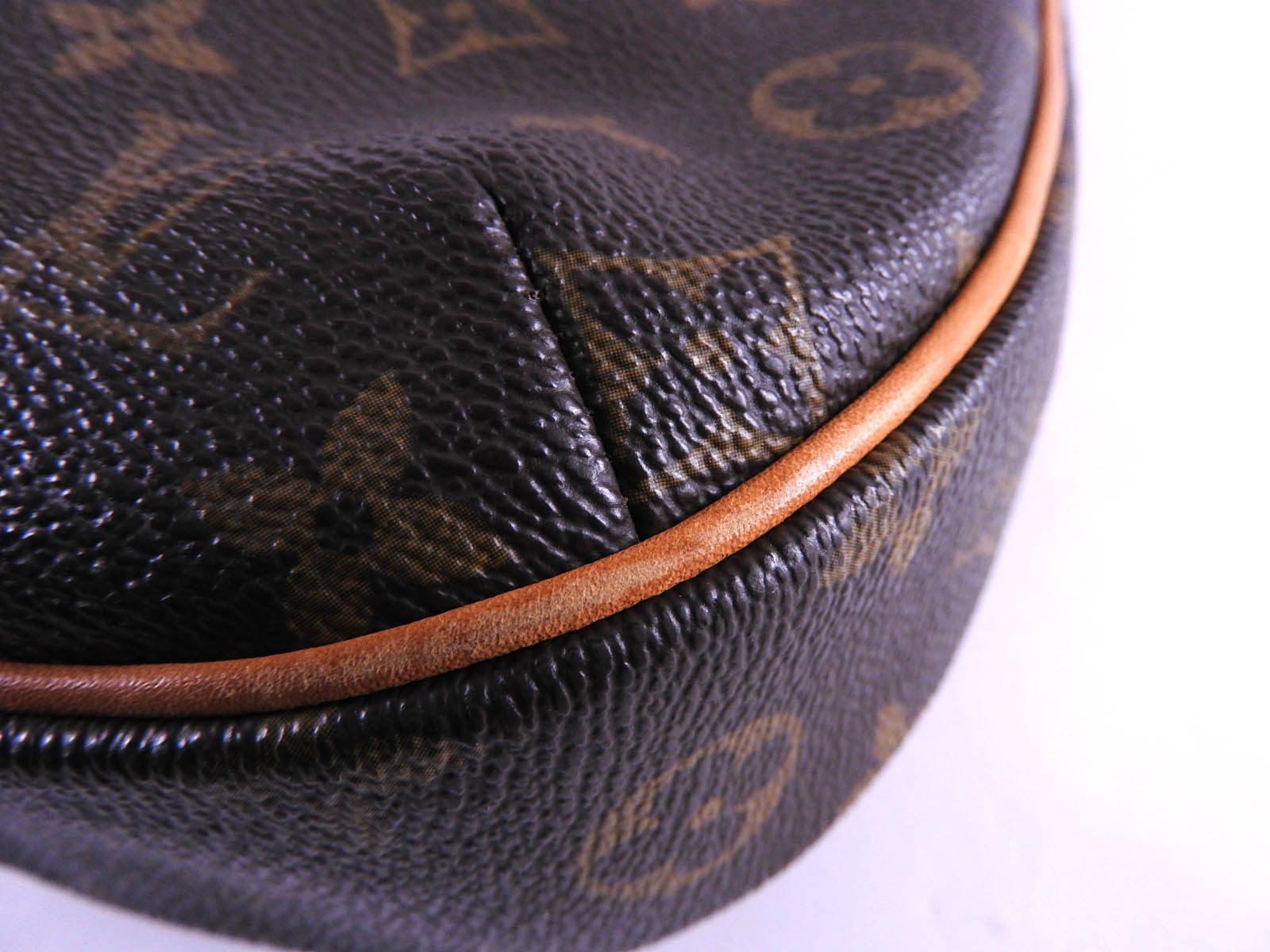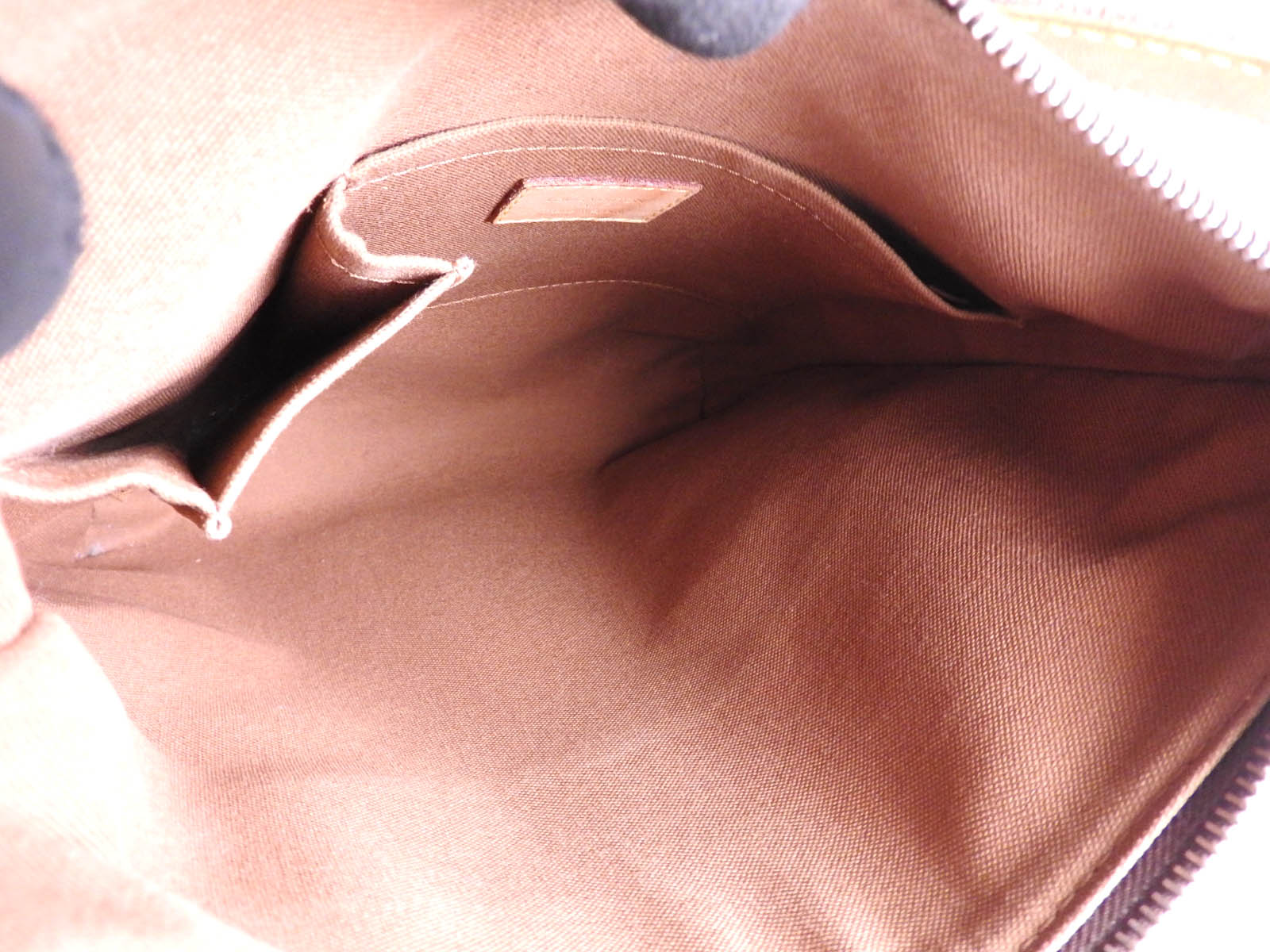 Monogram: Slightly used feeling. Slight stains. Leather: Used feeling. Some stains, wrinkles and tanning. |