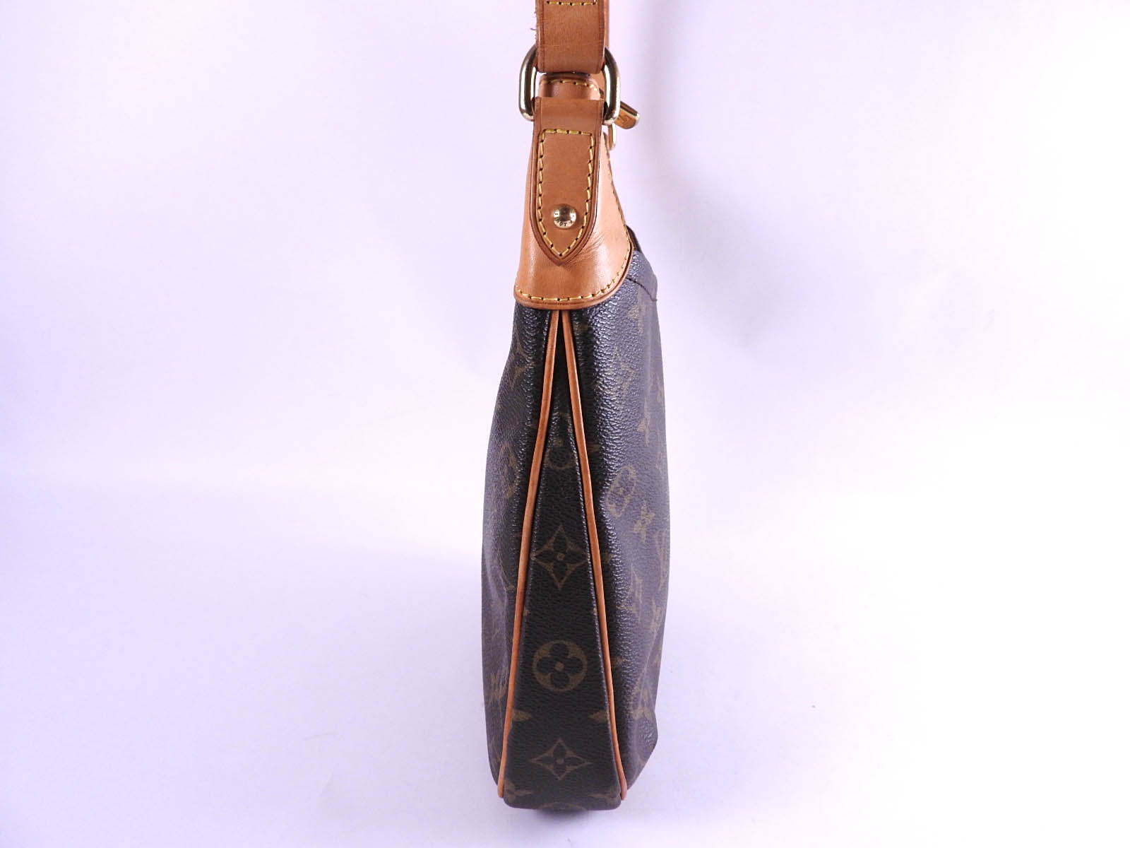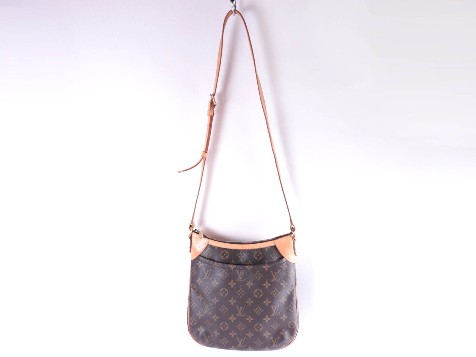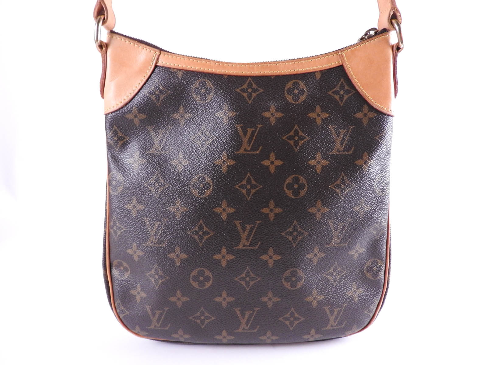 Monogram: Slightly used feeling. Slight stains. Leather: Used feeling. Some stains, wrinkles and tanning. |