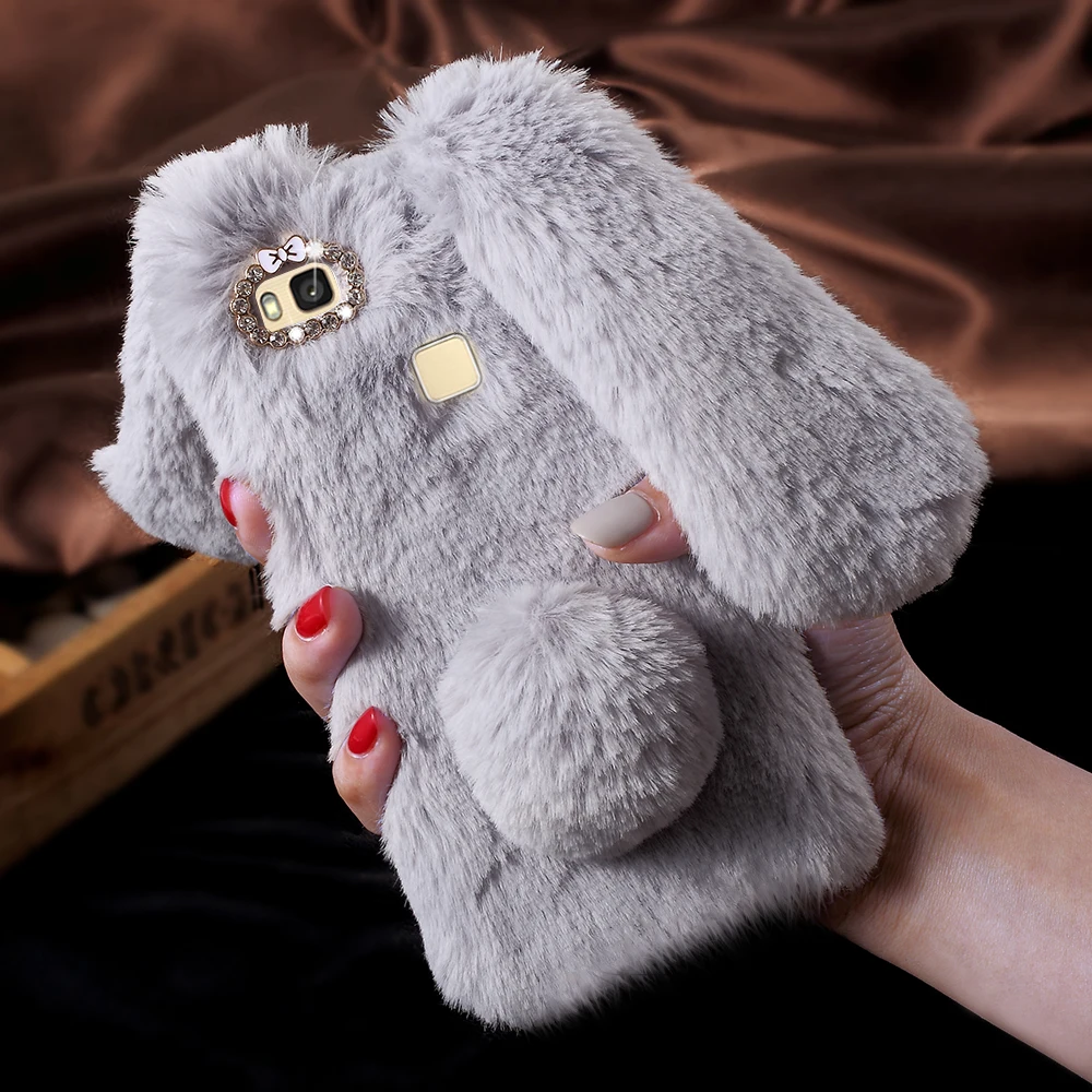 Case Feature:Rabbit Style Fluffy Warm Fur TPU Phone Shell
