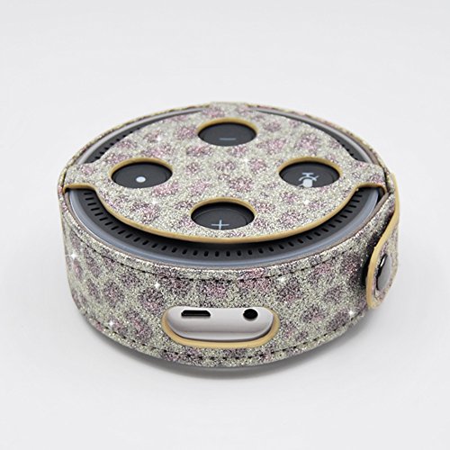 FEATURES SPECIFICATION: ?Improves protective ?Fits Amazon Echo Dot 2 perfectly ?Great gift idea for Echo Dot Alexa user ?Luxury stylish elegant looking ?Shiny sparkle bling Design ?Precision cut-out and easy access ?Easy install and take out ?Does not impact sound quality ?Lightweight for easy carrying ?Attractive home decor ?Satisfaction guaranteed ?Material: PU Leather ?Weight: 27g/0.95oz ?Dimensions: 3.5 x 3.5 x 1.2 inches ?Color:Blue/Red/Gold/Green/Silver/Rainbow/Leopard Print