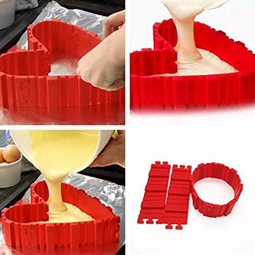 - ★CREATE ANY SHAPE AND CLEAN EASY--You can DIY all kinds of shape you like such as heart cakes, round cakes, square cakes, diamond cakes and MORE! Extremely Simple with this cake pan mould set, simply connect the bake snake together to create your desired shape. Then remove the cake mold quickly, not easily deformed.