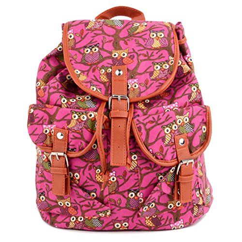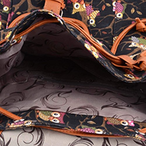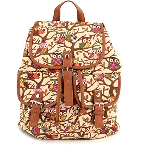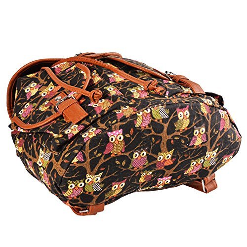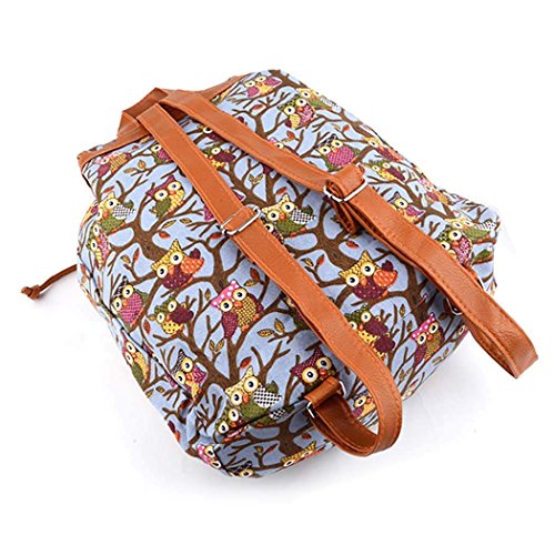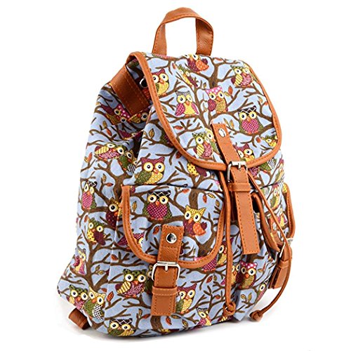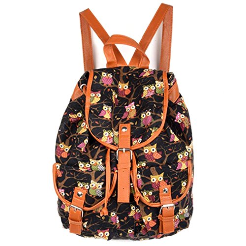 -. Title : eshion Women Cute Cartoon Owls Pattern Canvas Backpack Shoulder Bag
