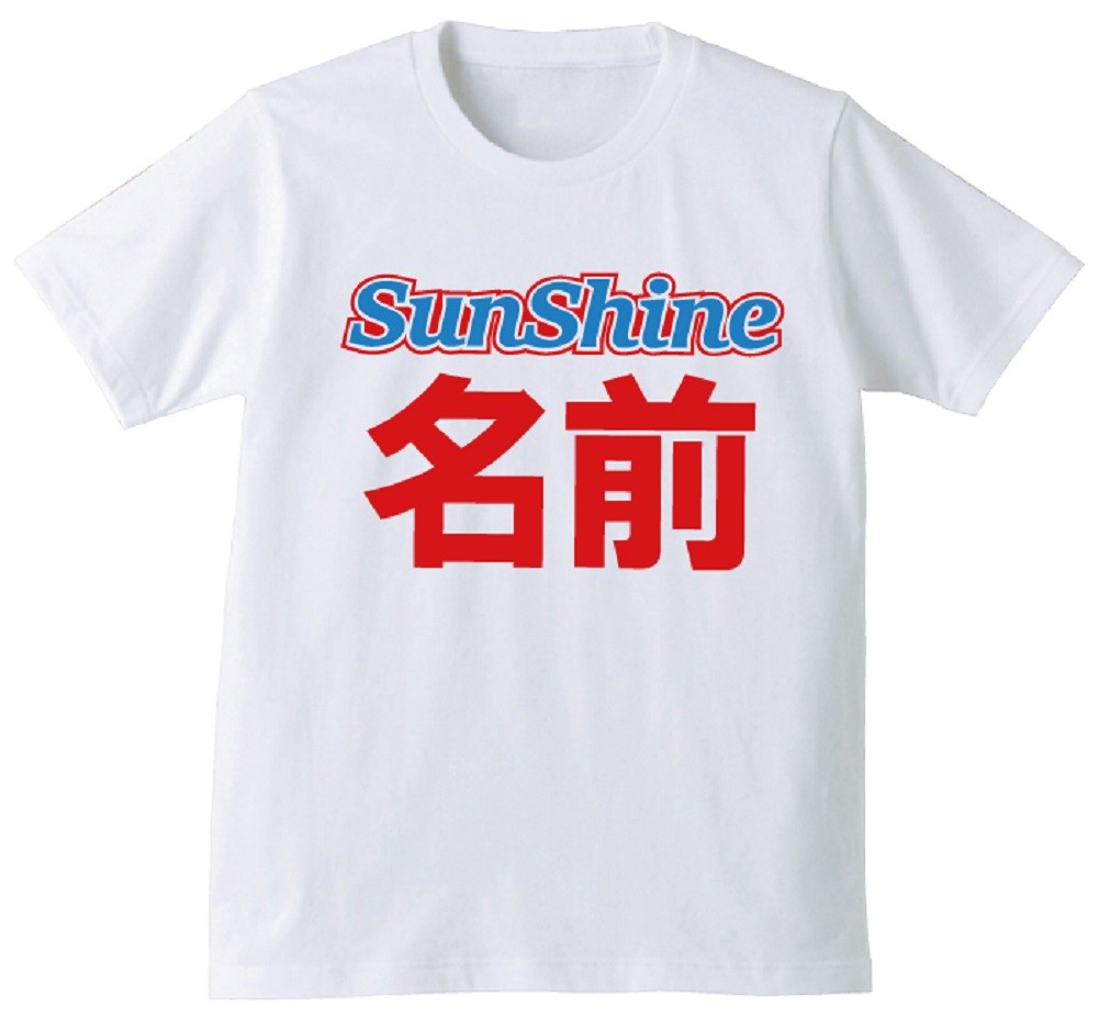 イエエエ~イ!空前絶後のぉ~!名入れできるTシャツだ、イエエエエ~~イ!!SunShineの下に、3文字までプリントできるんだ!イエエエエ~~イ!!もちろんパロディだ、イエエエエ~~イ!!宴会とかで、まずはウケるんだ、イエエエエ~~イ!!盛り上げたい時に、何かと役に立つTシャツなんだイエエエエ~~イ!!なんだか、よくわかんなくなってきたから、とにかく買ってみるんだイエエエエ~~イ!!しっかりとした生地に耐久性の良いプリントをしております。