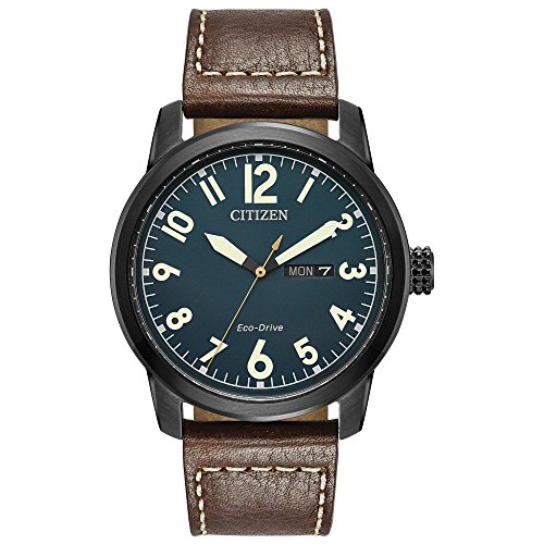 With a rich leather strap, this Citizen military inspired timepiece is polished and comfortable.