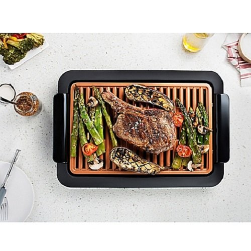 The Gotham Steel electric smokeless grill with griddle insert lets you enjoy your favorite grilled meals indoors. Boasting titanium and ceramic nonstick surface, this useful grill features even heat distribution for superior cooking results. And like all our Gotham Steel products it's made of ti-cerama surface which combines super strong titanium with super slick ceramic which means sticking or scratching is a thing of the past. Making healthy grilling and cleaning super easy and super fun! and Yes, it is dishwasher safe. So go ahead and BBQ hotdogs, hamburgers, chicken Salmon ribs and even desserts right in your kitchen, because you know it won't stick to the grill!Feature