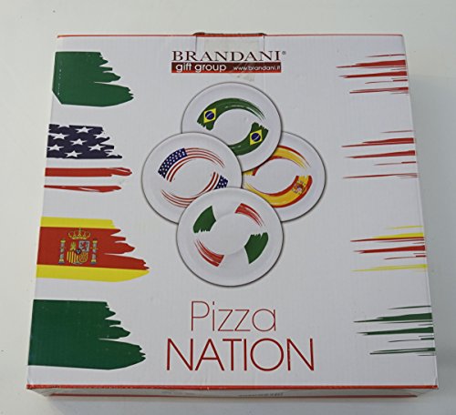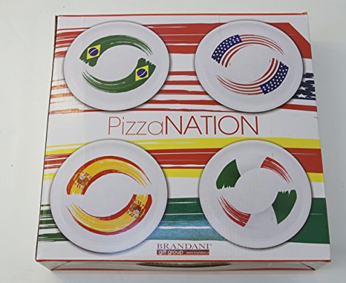 Brandani: "Pizza Nation" Set of 4 Pizza Plates [ Italian Import ]