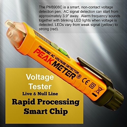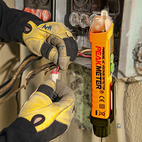 Non-Contact Voltage Detector by Smart Outlet - PM8908C 12-1000V AC Tester & Led Flashlight. Test Live Wire AC Volt Current - Orange