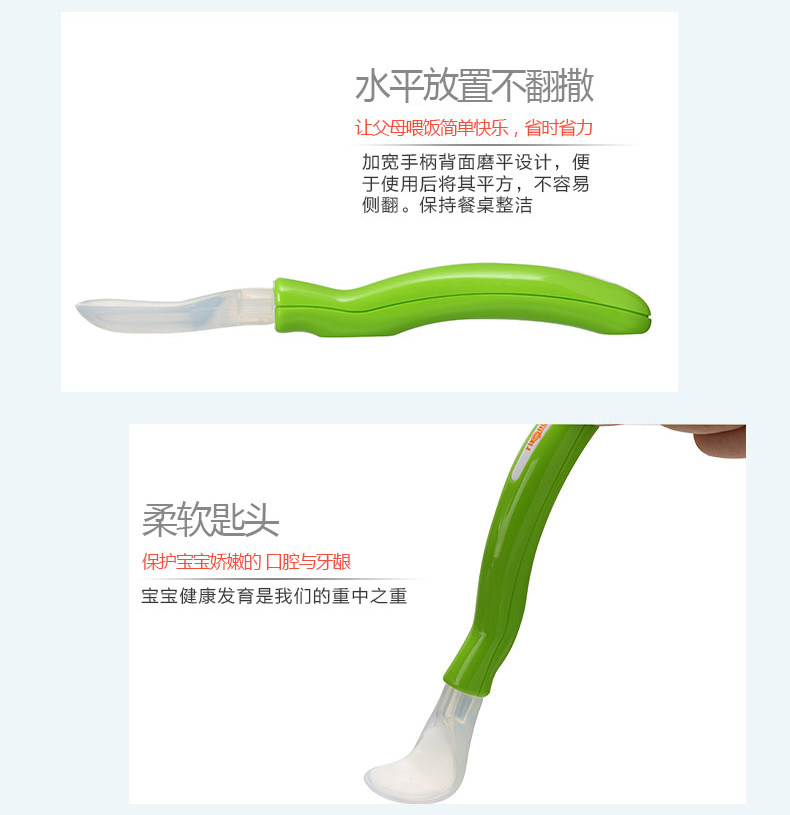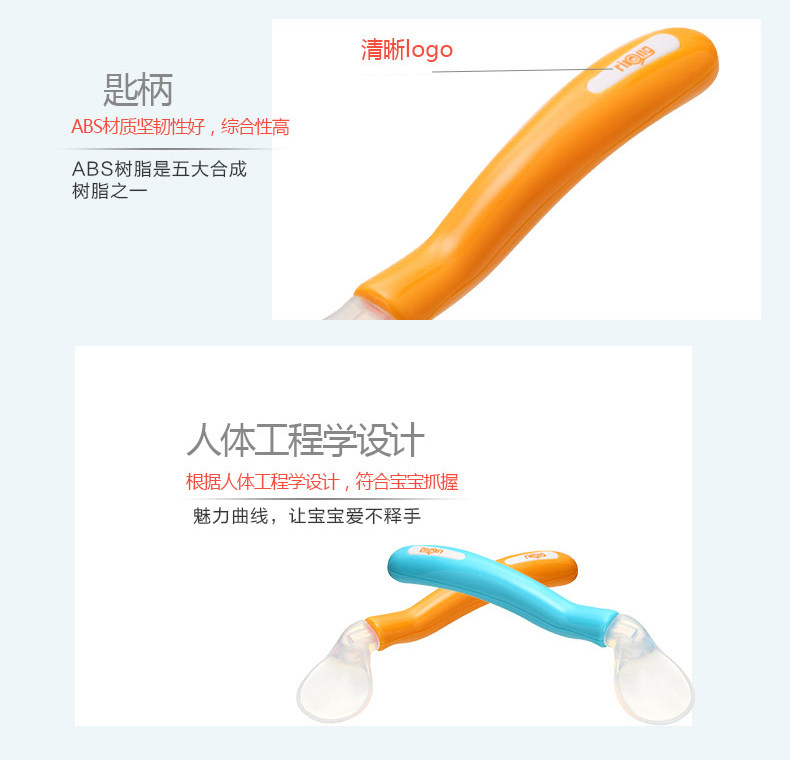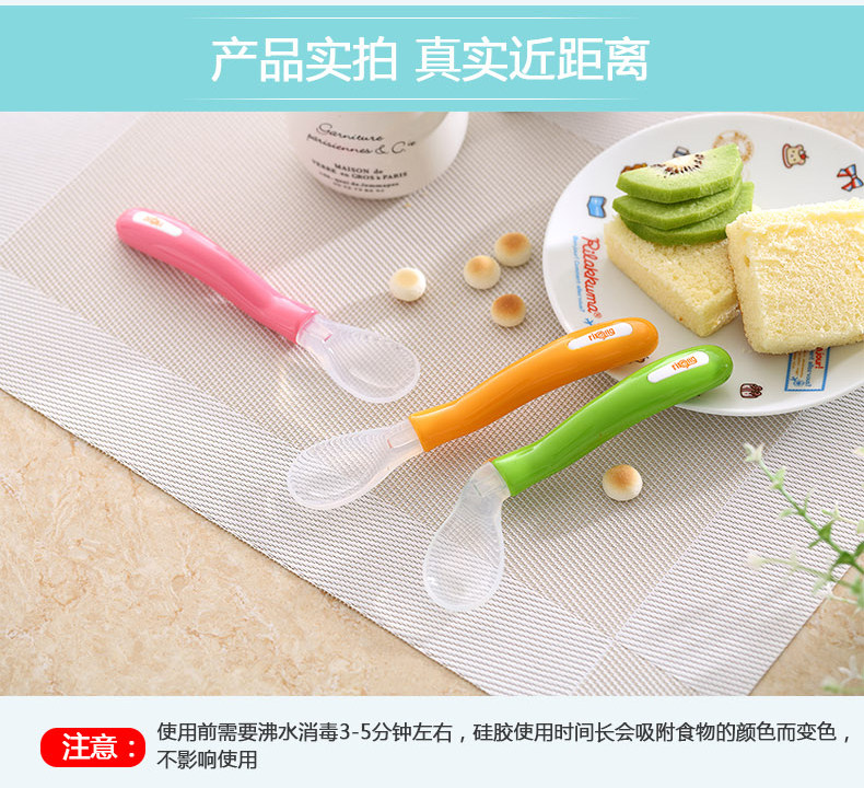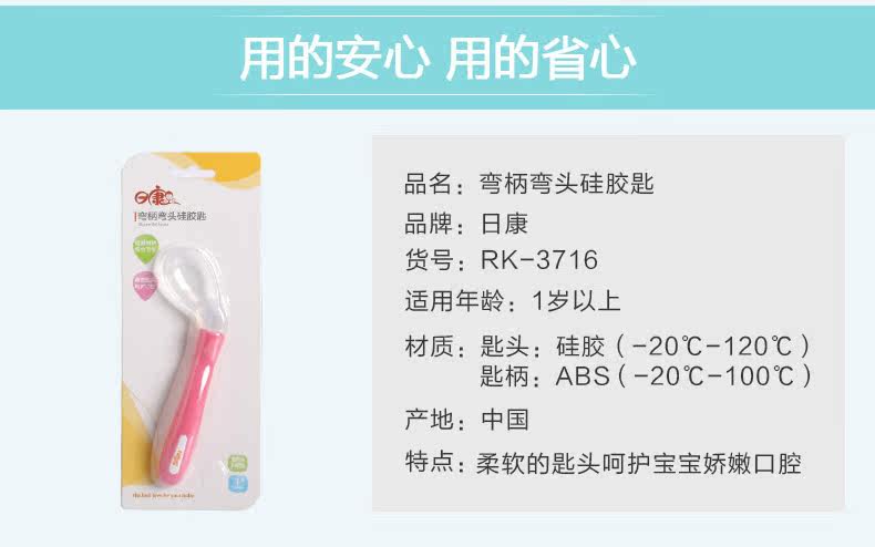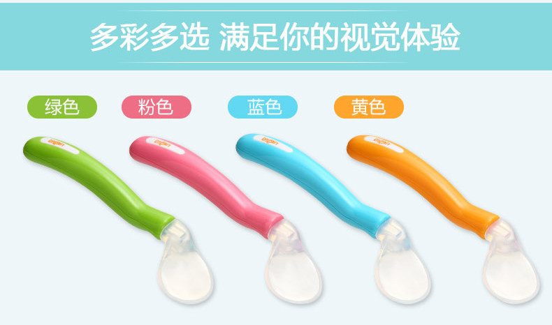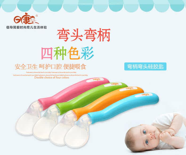 日康婴儿勺子宝宝学吃饭训练弯头勺儿童汤勺硅胶软小勺辅食软头勺