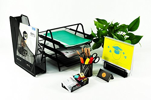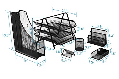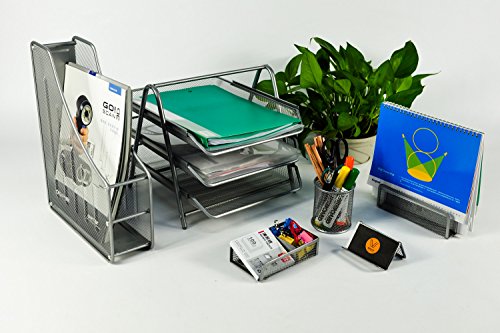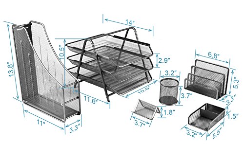 -. Title : YIMU 6 Piece Mesh Wire Office Desk Top Organizer Set - 3 Tier File Tray / Folder Holder / Pencil Cup / Business Card Holder / Memo Holder / Letter Holder