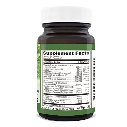 THE B-COMPLEX STRESS FIGHTER - Combines B1, B2, B3, B6, B12, Magnesium, Vitamin C, and extracts of Passion Flower & Valerian Root. This blend is a maximum strength counter to mental and physical stress. Take twice daily to increase your resilience.