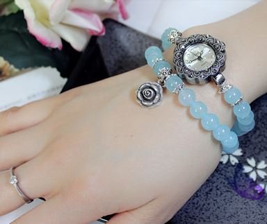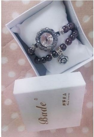 원본상품명: 美しい 天然水晶 バラの チャ?ム付き ?珠ブレスレット風 腕時計