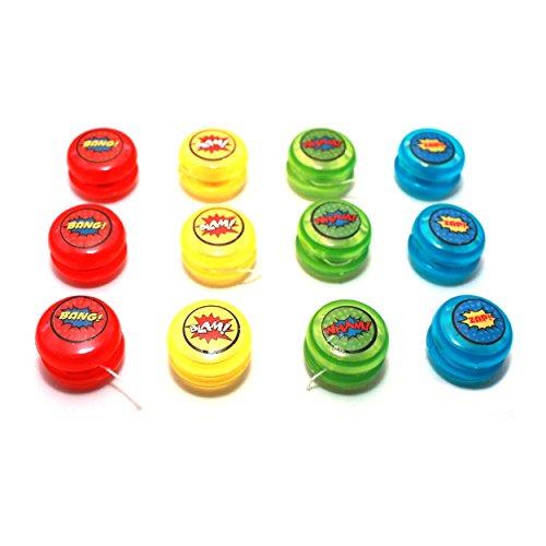 Product Description These superhero yoyos are the perfect superhero party favors! They measure 1 1/4 inches in diameter and come in 4 assorted colors with various superhero phrases. Comes in a pack of 12 yo-yos. 0